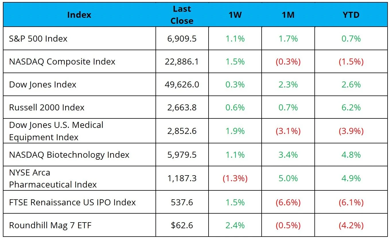 The NBI was up 1.1%, while the NYSE Pharma Index was down 1.3% on the week