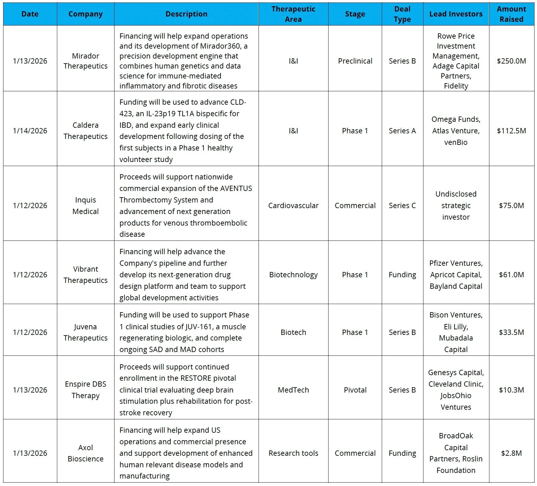 Sources: Pitchbook, Biomedtracker, and CapIQ