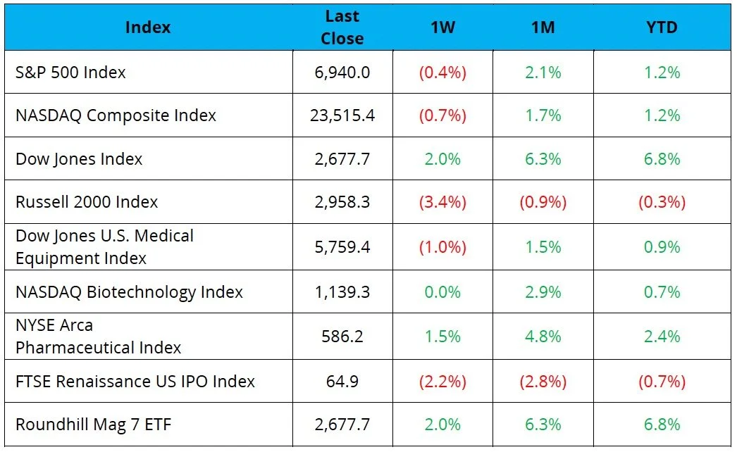 The NYSE Pharma Index was up 1.5%, while the NBI was flat on the week