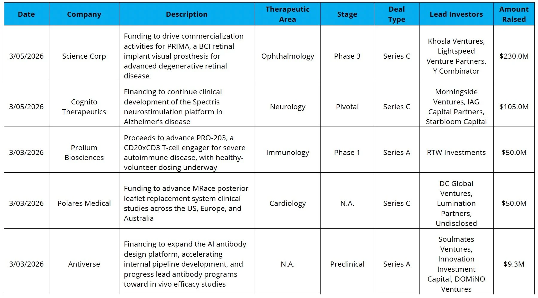Concurrent with its merger with Rallybio, Candid Therapeutics raised $505.0M to support the advancement of Candid's diversified pipeline of TCE programs through multiple clinical milestones, including the initiation and clinical readouts of Phase 2 studies for cizutamig, a B-cell maturation antigen (BCMA) targeting TCE, in myasthenia gravis and interstitial lung disease (ILD). Investors included venBio Partners, Viking Global Investors, Cormorant Asset Management, Foresite Capital, Soleus Capital, TCGX, Vivo Capital.