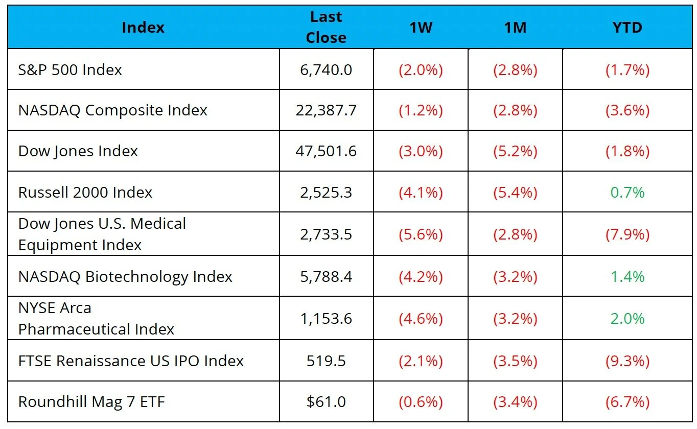 The S&P 500, Nasdaq, and Dow were down (2.0%), (1.2%), and (3.0%) respectively
