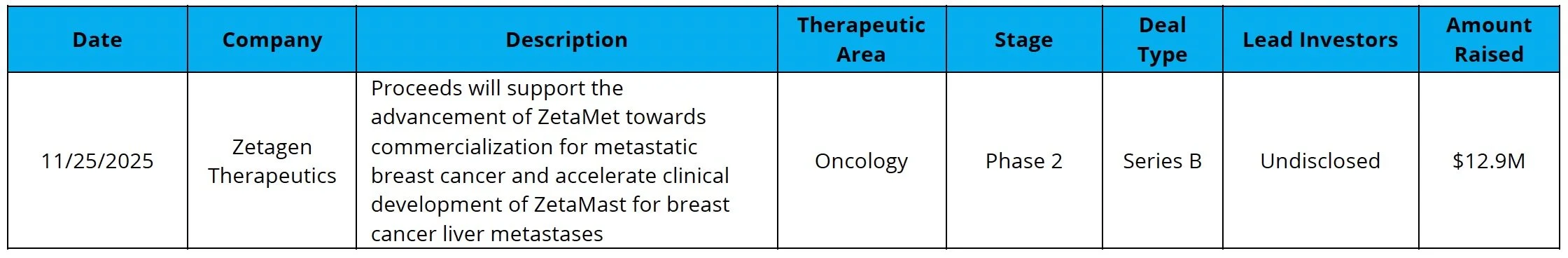 There were no M&A deals this week. However, the volume of large M&A deals has accelerated in 2025 YTD, highlighting big pharma’s need to bolster both their pipelines and commercial portfolios as they confront near-term revenue pressures from impending patent cliffs.